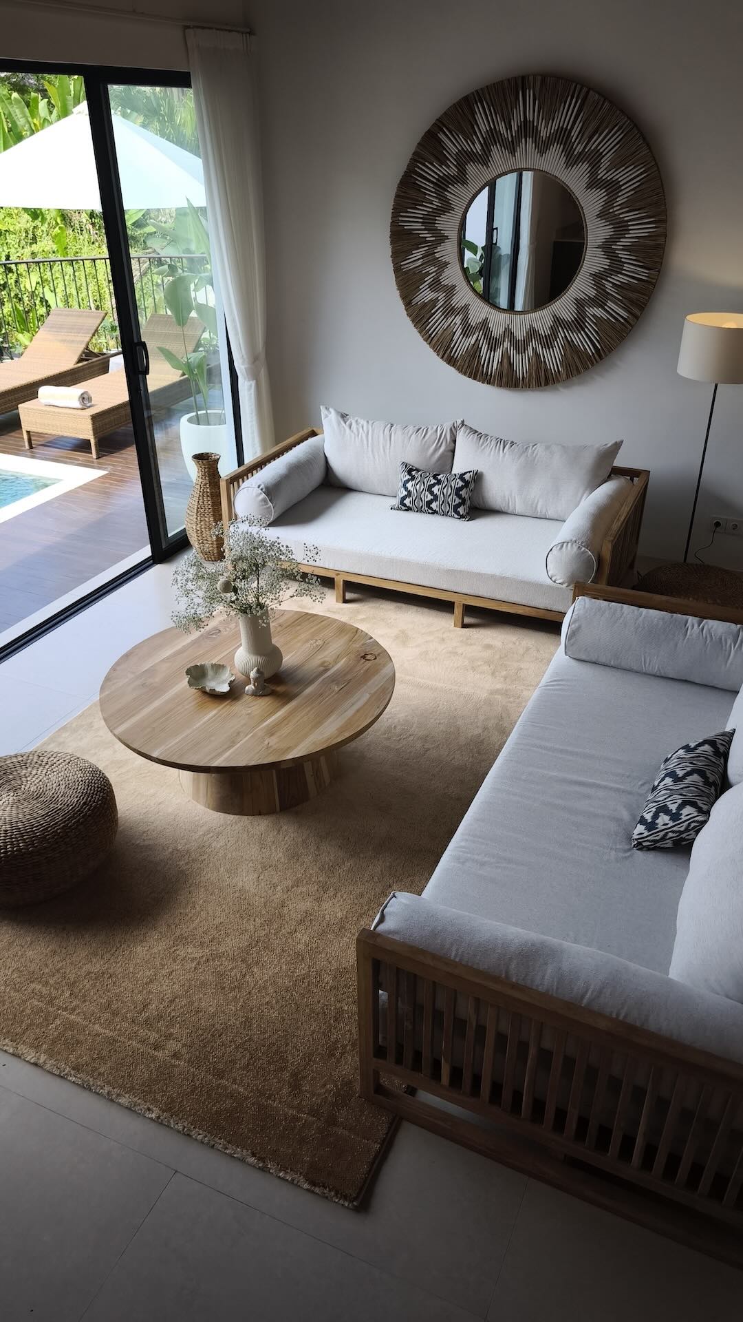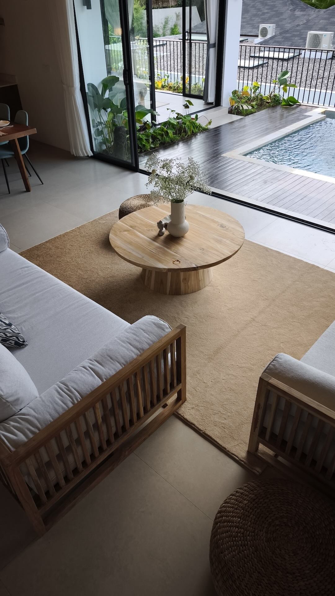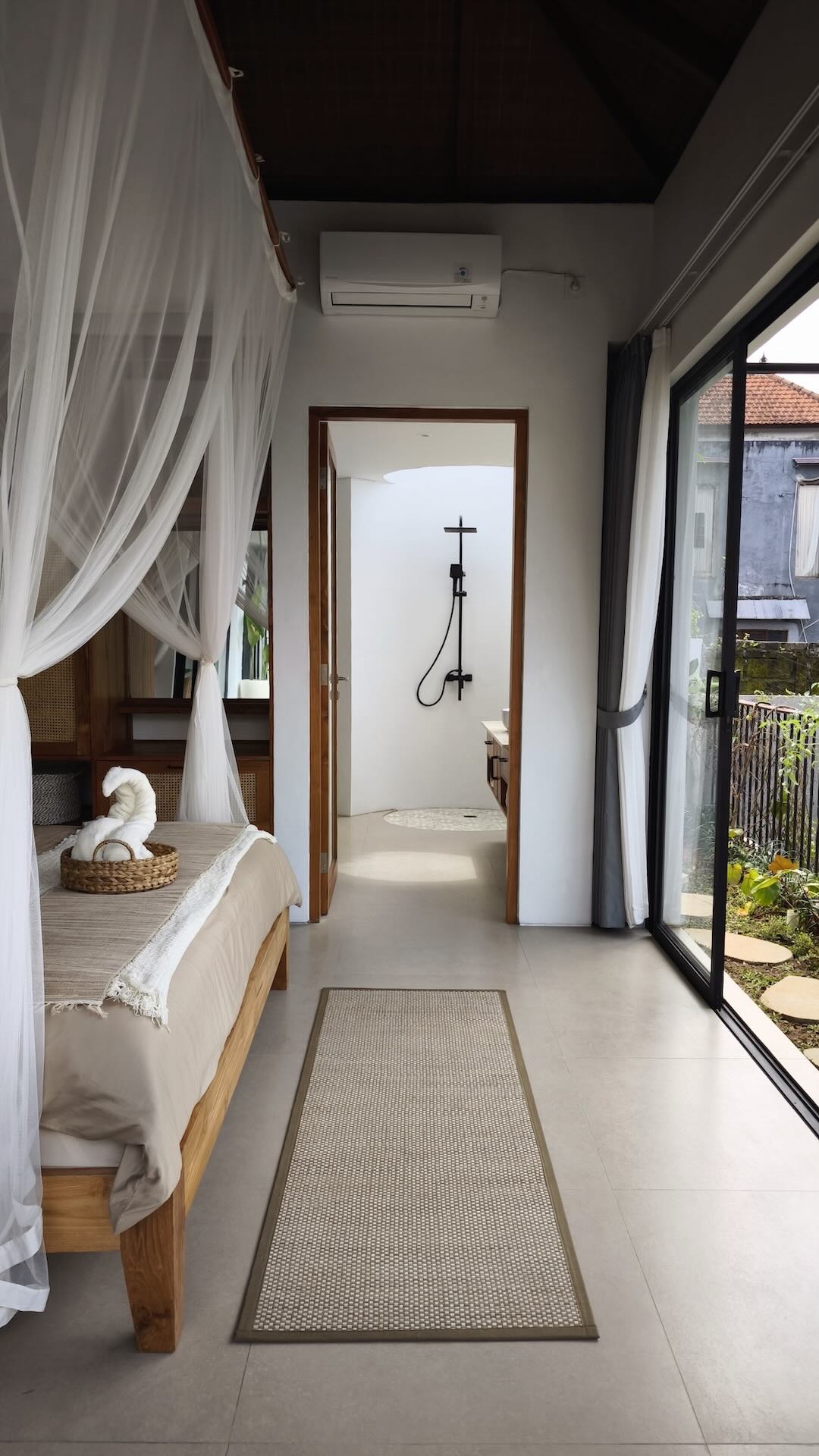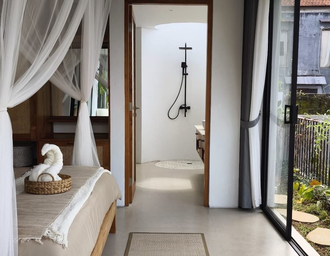 A simple, clean and modern villa on the road of Tirta Tawar in Ubud. A hospitality haven that offers a modern and comfortable stay with soft interior design in toned-down colors.